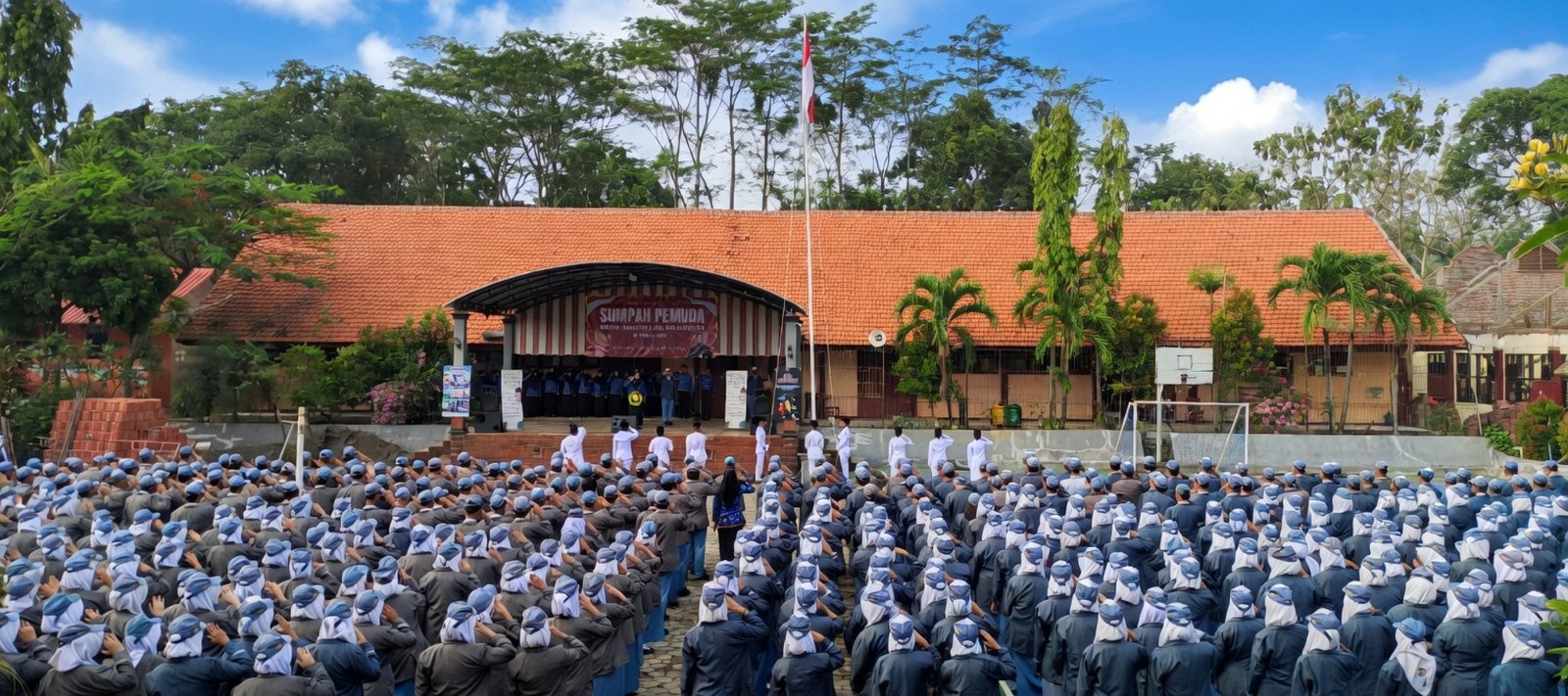 Awali Hari Pertama Masuk Sekolah Pasca Lebaran, SMAN 1 Ngoro Gelar Upacara Bendera dan Halal Bihalal